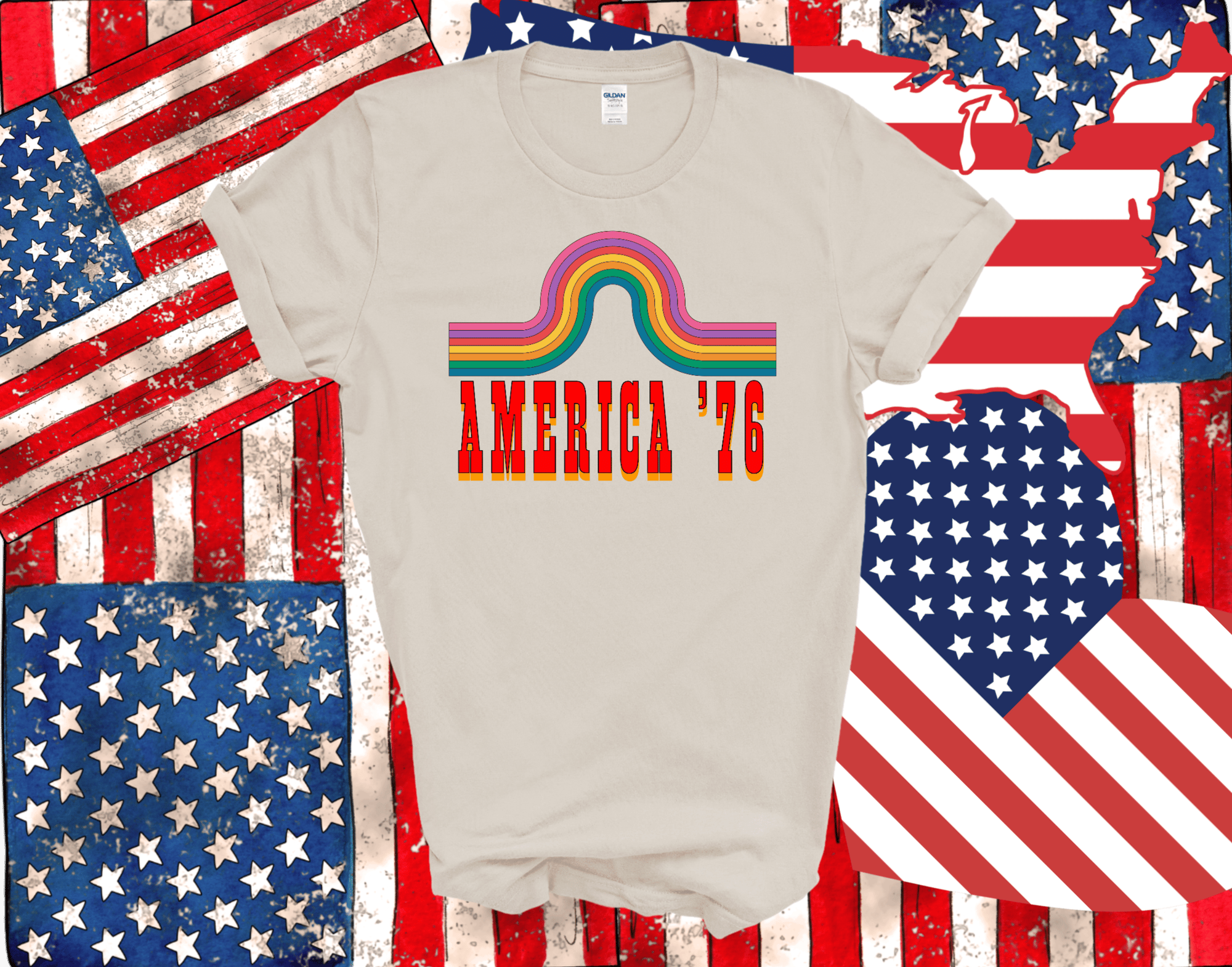 Celebrate the 250th Birthday of the United States of America With a throw back to the 200th birthday in this retro tee.
